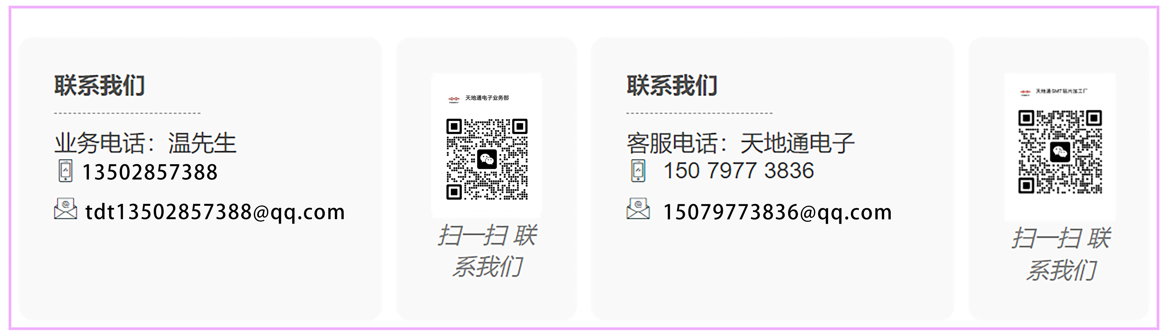 深圳市天地通电子有限公司成立于2004年,专注于pcba制造,元器件分销、SMT贴片,DIP加工和成品组装,可以为汽车电子,医疗电子,消费电子,通信和智能家居控制行业提供一站式PCBA制造服务。